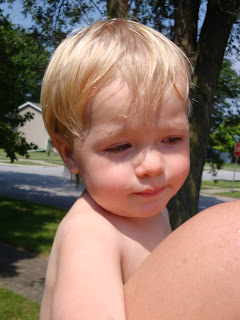 Kaysen did not like the sprinkler at all! I remember last year Caleb didn't like it too much either. But this year he had a blast. He was a little hesitant in the beginning but quickly caught on to what he was supposed to do.